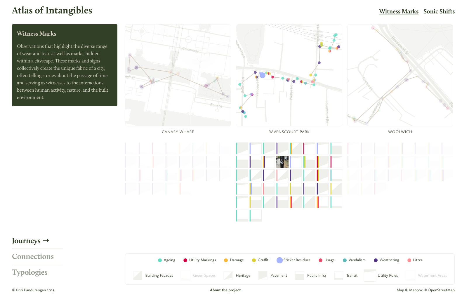 Somehow I missed this piece last year in the data viz world. But wow do I love the Atlas of Intangibles by Priti Pandurangan. The design, interaction, use of small multiples, and map wayfinding is really lovely. More than all of that though, I find the concept brilliant: “a data experience designed to highlight the rich, interconnected web of sensory information that lies beneath our everyday encounters.”