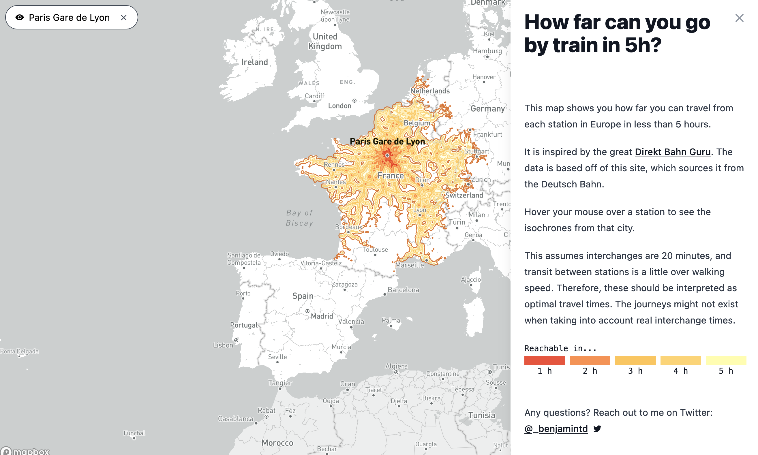 One of my favorite maps over the past few weeks. It is both useful and a telling story about which countries have invested in their public transit. Plus, the author just open sourced the code!