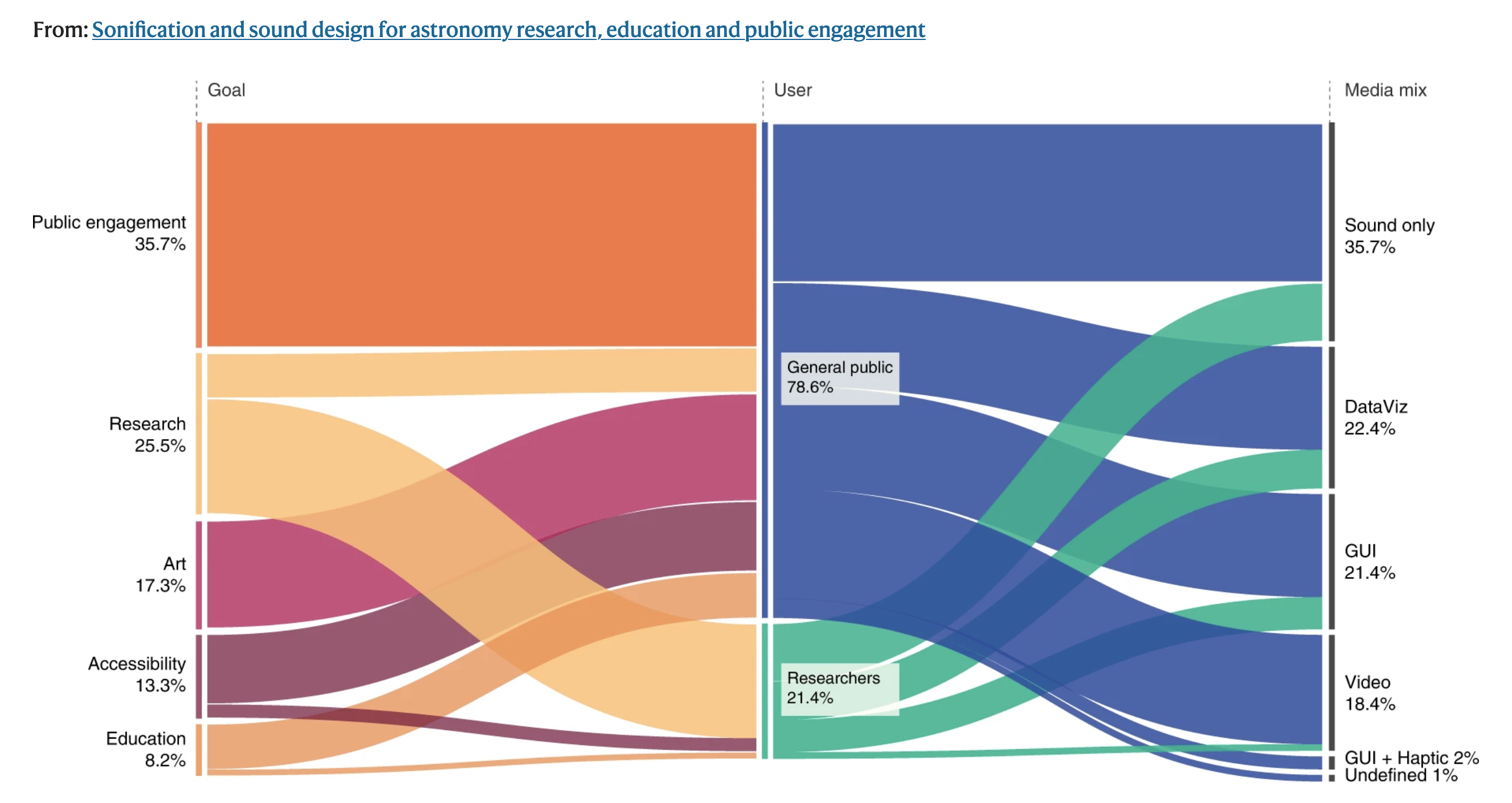 I got some time to read this paper about how data sonification has been used in astronomy research. For anyone interested in mixed media data communication, I think this is a fascinating read. The paper is open to the public. I also documented a few thoughts I had as I read in this Twitter thread: