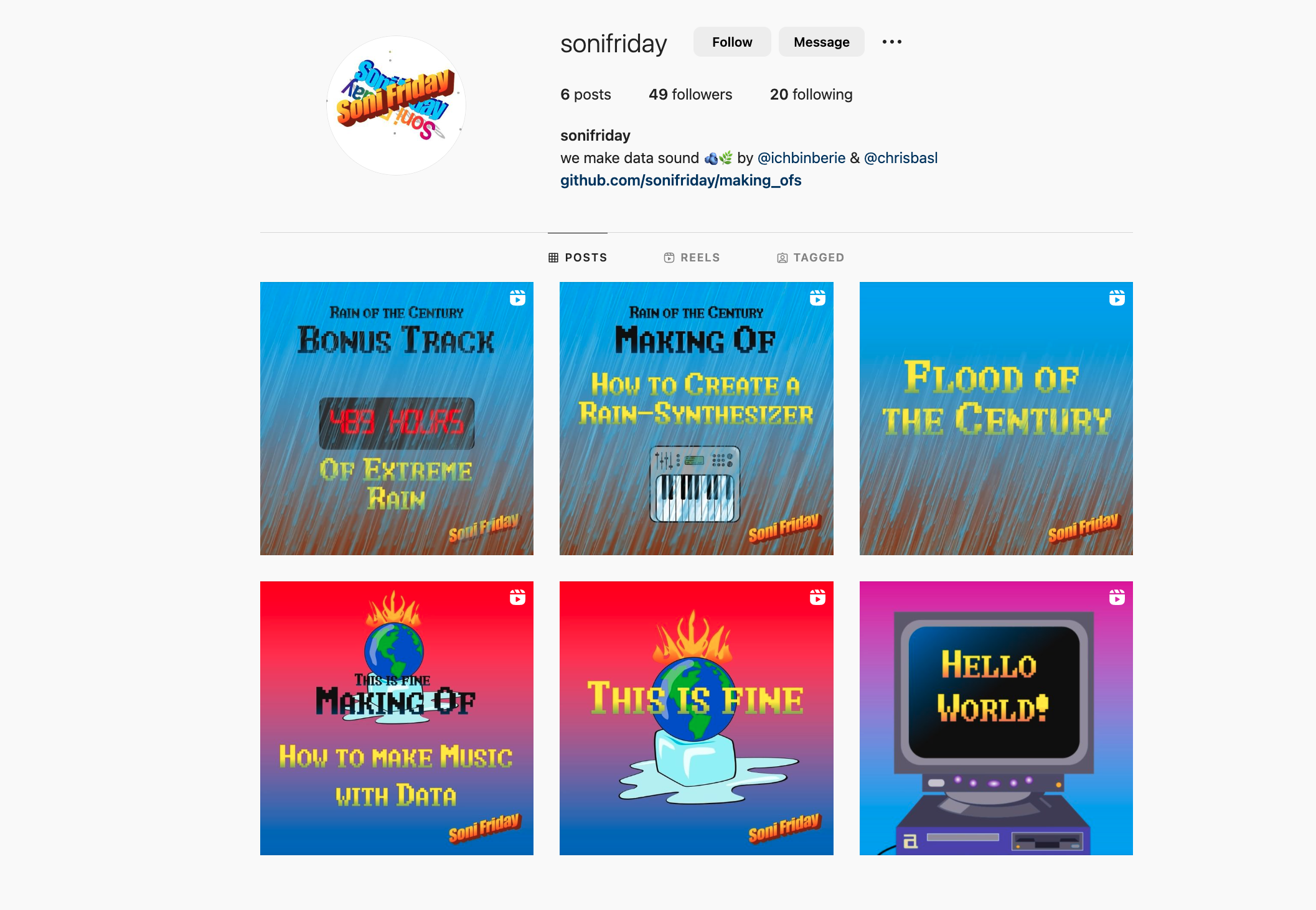 I discovered this Instagram account on the Decibels Discord (if you’re interested in data sonification, come join us!). In addition to creating original sonifications, Sonifriday also post some bite-sized “how-to” and “behind the scenes” reels. The “How to Make Music with Data” one looks especially nice as an introduction to using Sonic Pi as a sonification tool. Oh, and they post some of their code to Github!